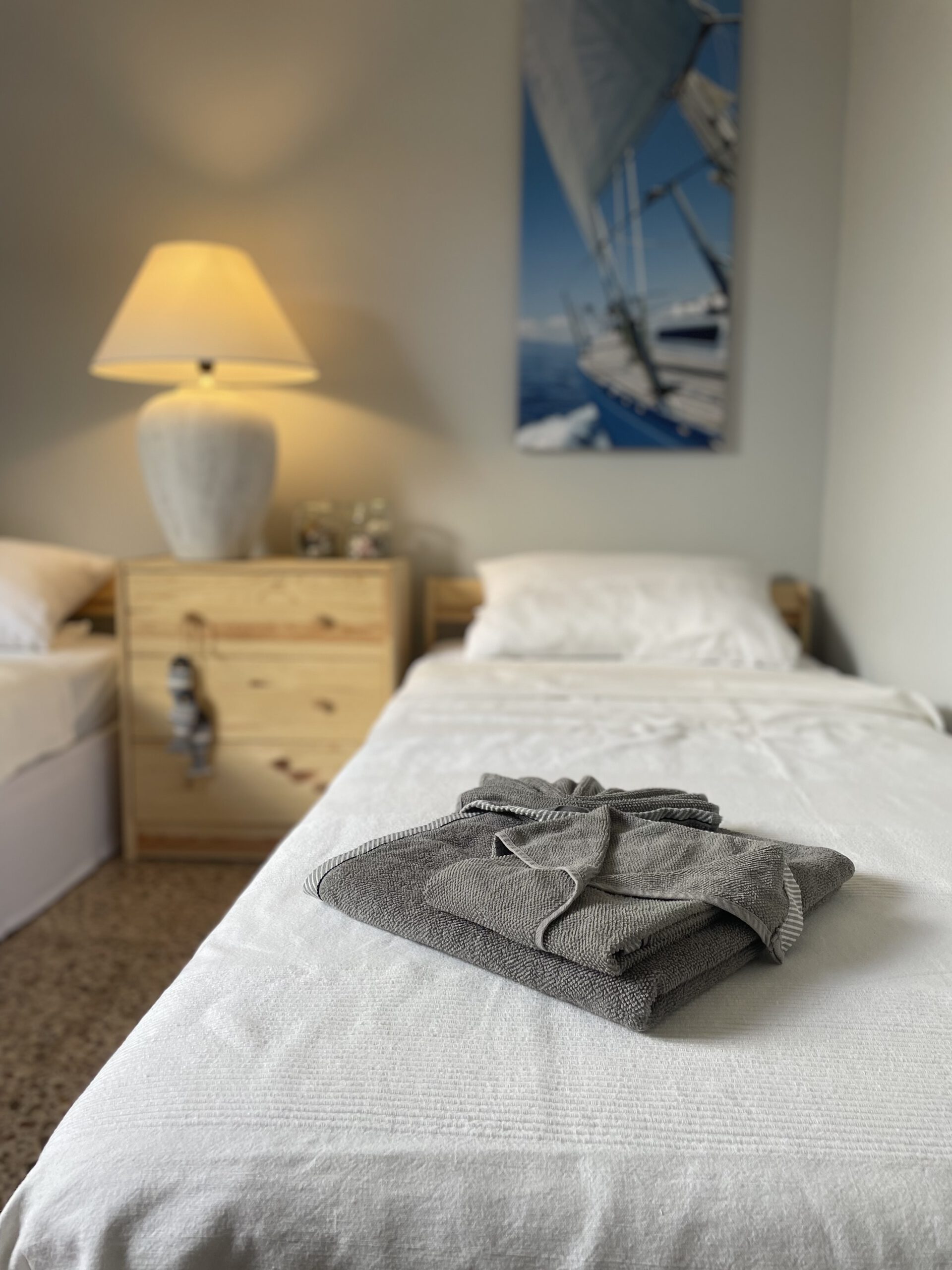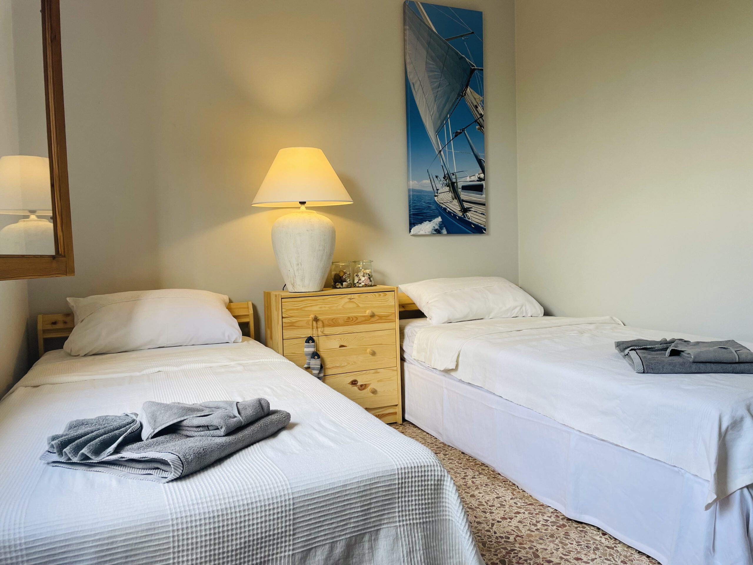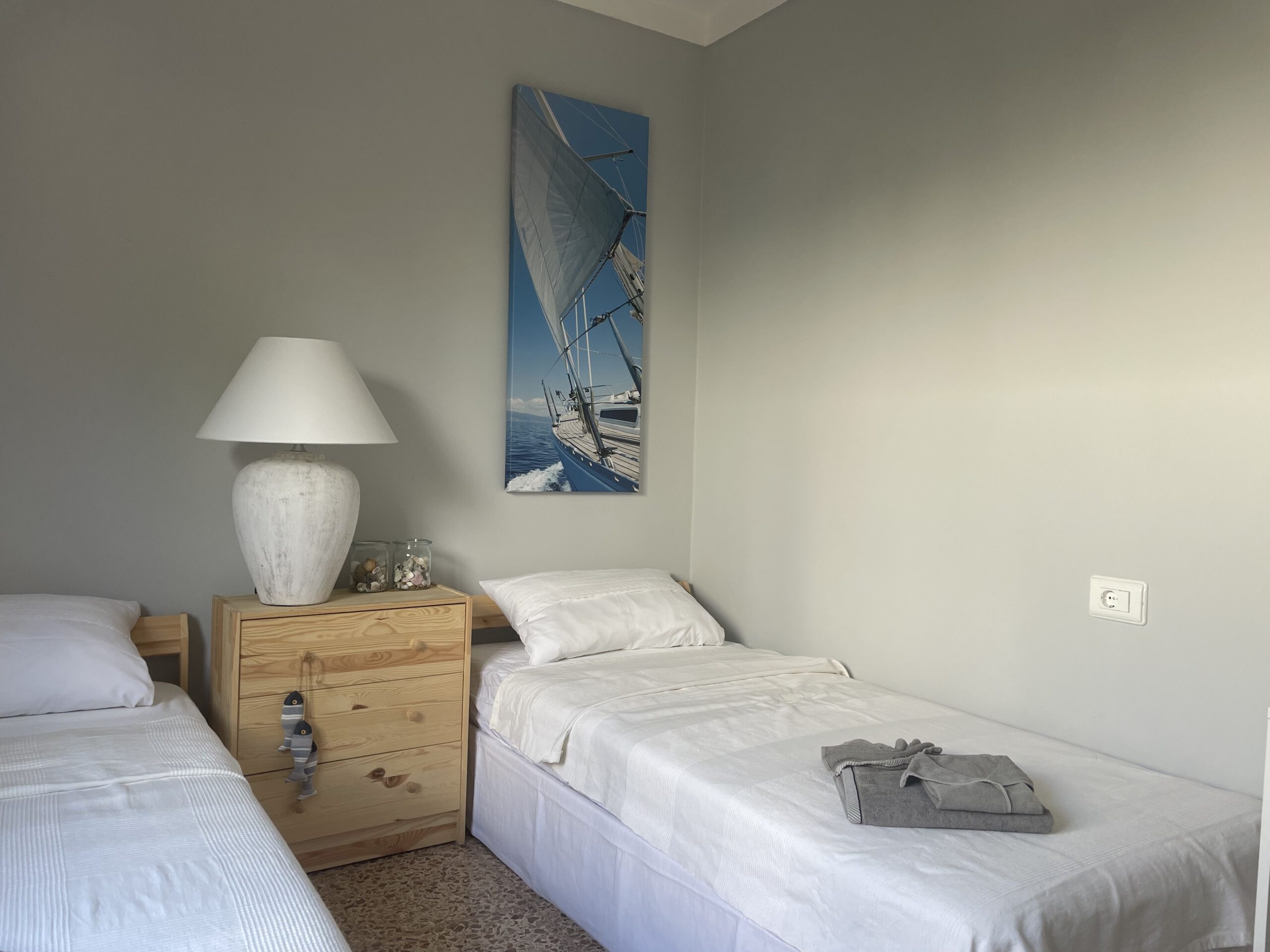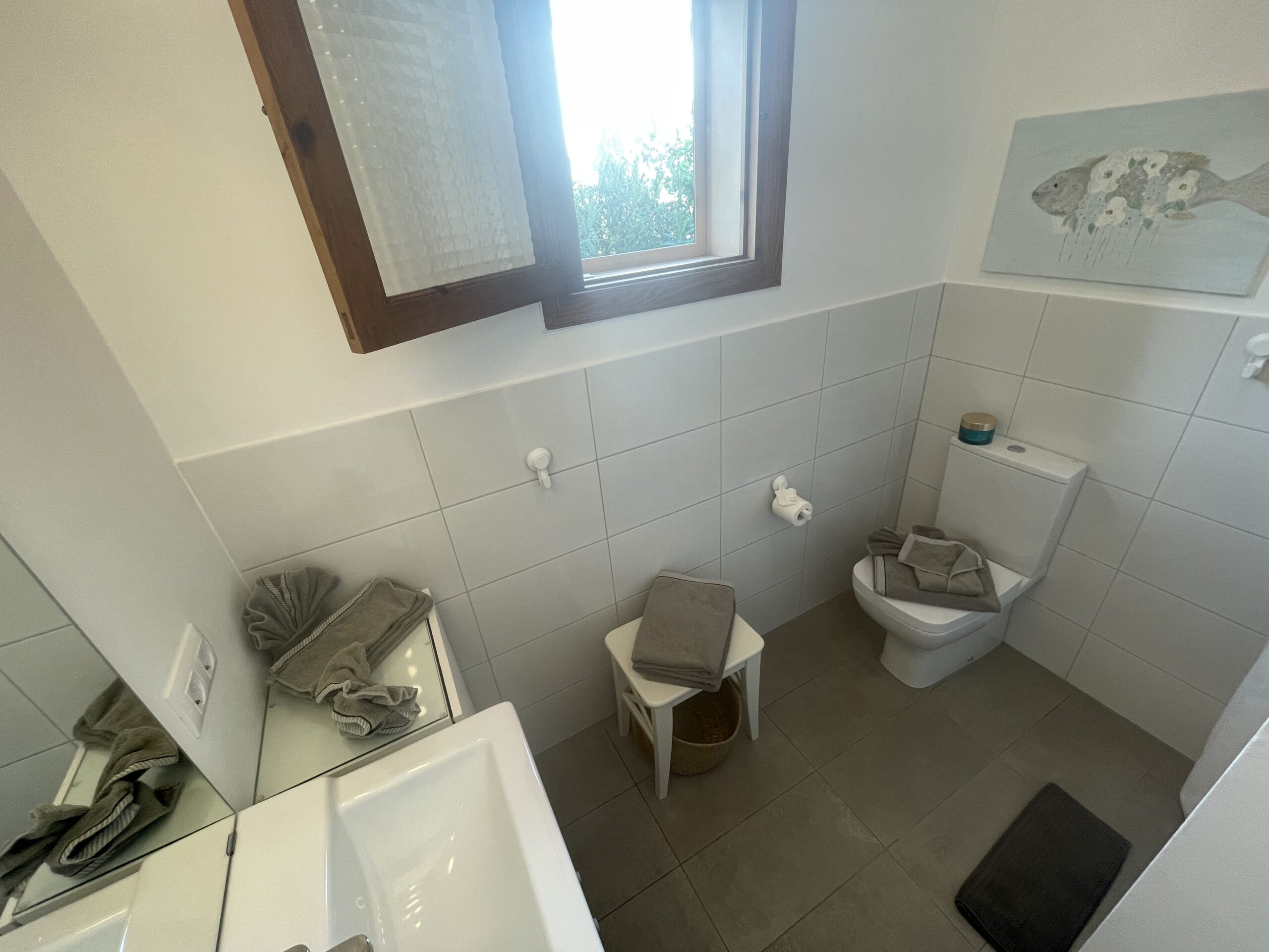 Es verfügt über drei klimatisierte Schlafzimmer, ein Badezimmer, sowie ein Außenbad. Die Küche befindet sich gleich am Innenhof und ist mit Spülmaschine, Backofen, Ceranfeld, Dunstabzugshaube, großer Kühl/Gefrierkombination, Schneidemaschine, Kaffeemaschine, Kitchen Aid, Toaster und diversen Details ausgestattet. Das klimatisierte Wohnzimmer ist mit einer Couch, vier Stühlen und einem ausziehbarem Esstisch, sowie einem Fernseher ausgestattet.